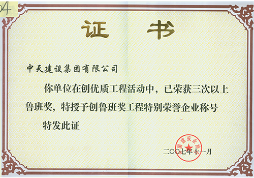 創(chuàng)魯班獎(jiǎng)工程特別榮譽(yù)企業(yè)