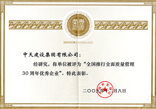 全國(guó)推行質(zhì)量管理30周年優(yōu)秀企業(yè)